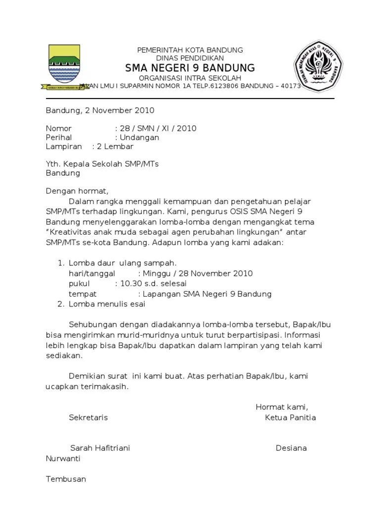 Surat undangan yang resmi merupakan sebuah surat yang dikeluarkan oleh lembaga, perusahaan, atau instansi tertentu untuk ditujukan kepada . Surat undangan resmi biasa digunakan untuk tujuan yang bersifat umum/kolektif seperti pada instansi, lembaga, komunitas, maupun individu. Surat resmi dikeluarkan oleh individu, organisasi, atau instansi tertentu untuk. Surat panggilan kerja · 4. Ditugaskan membuat surat undangan resmi?
